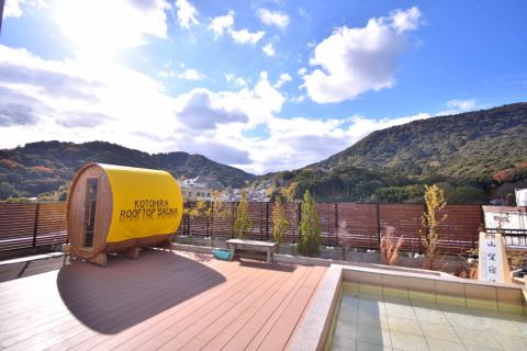 姉妹館【こんぴら温泉 湯元八千代】 屋上露天風呂に バレルサウナがオープン!当館のご宿泊者様は 徒歩2分、姉妹館【こんぴら温泉 湯元八千代】の